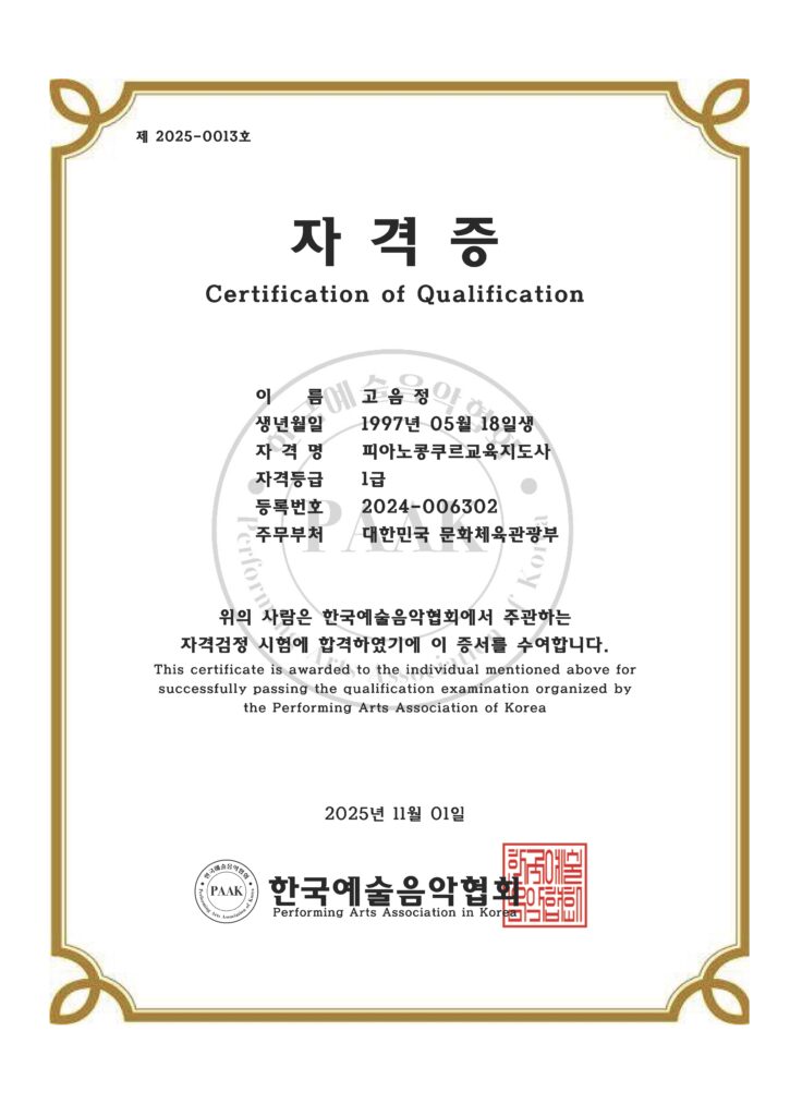 ‘피아노콩쿠르교육지도사’라는 명실상부한